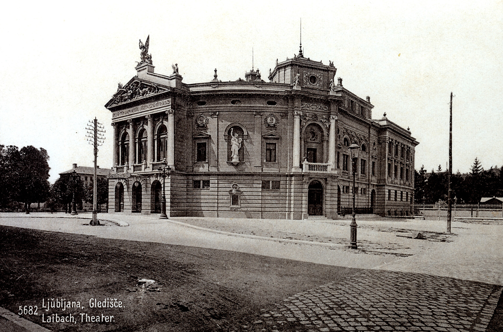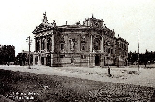 Poslopje novega Deželnega gledališča, današnjega SNG Opera in balet v Ljubljani, fotografija iz leta 1903