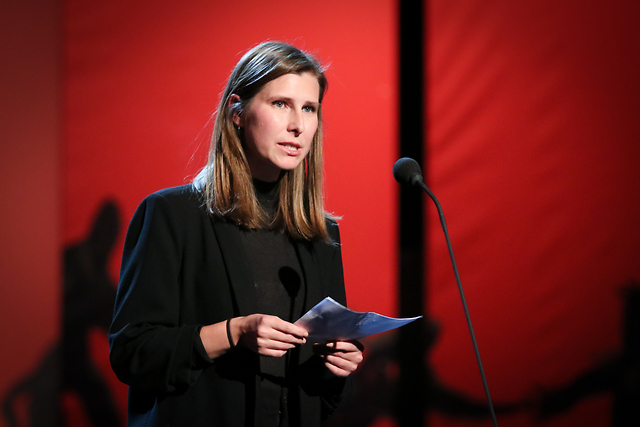 Alja Lobnik, članica izvršnega odbora Društva gledaliških kritikov in teatrologov Slovenije,na zaključni slovesnosti 52. Festivala Borštnikovo srečanje 2017 v Veliki dvorani SNG Maribor.