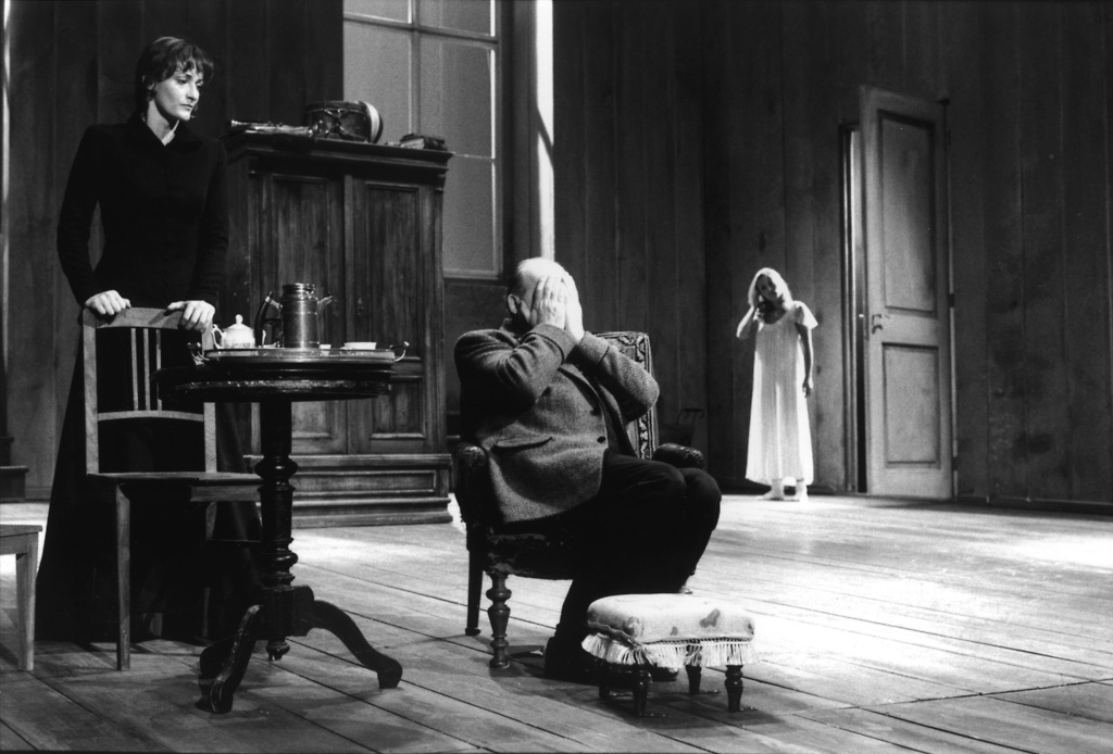 Saša Pavček (Varja), Radko Polič (Leonid Andrejevič Gajev) in Nataša Barbara Gračner (Anja) v Češnjevem vrtu Antona PAvloviča Čehova v režiji Janusca Kice in produkciji SNG Drame Ljubljana.