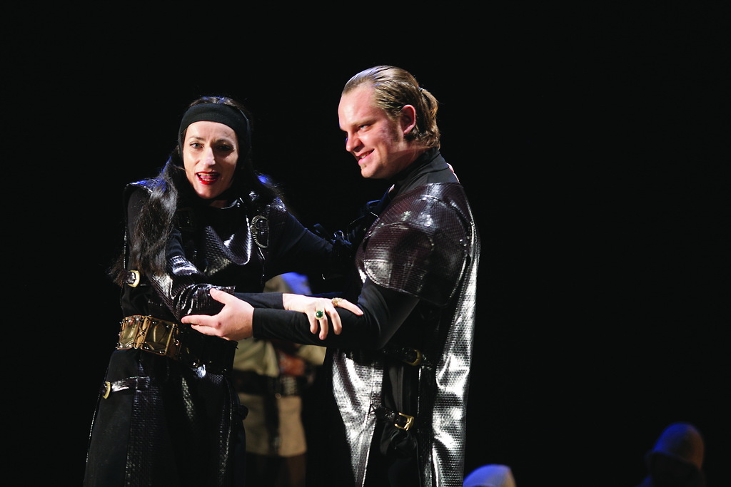 Saša Pavček (Regan) in Jurij Zrnec (Edmund) v Kralju Learu Williama Shakespearja v režiji Mileta Koruna in produkciji SNG Drama Ljubljana.