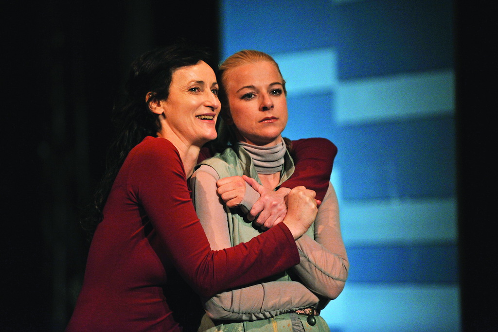 Saša Pavček (Galactia) in Barbara Cerar (Supporta) v Slikah z usmrtitve Howarda Barkerja v režiji Lindy Davies in produkciji SNG Drama Ljubljana.