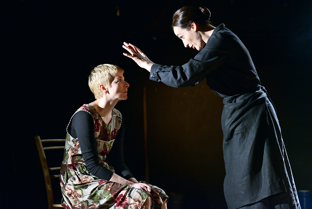 Saša Pavček (Babica) in Barbara Cerar (Ona) v Angelu pozabe Maje Haderlap, v adaptaciji in režiji Igorja Pisona in produkciji SNG Drama Ljubljana.