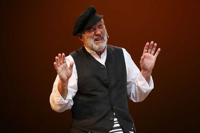 Janez Hočevar (Tevje) v uprizoritvi Goslač na strehi Josepha Steina, Jerrya Bocka in Sheldona Harnicka, v režiji Stanislava Moše in produkciji Mestnega gledališča ljubljanskega.