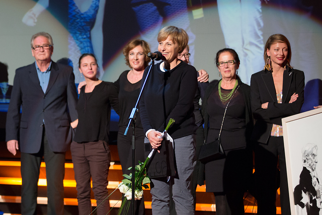 Ansambel uprizoritve Hedda Gabler – v ospredju Mateja Koležnik, v ozadju Ivo Ban, Polonca Rajšp, Maša Žilavec, Mateja Pucko, Metka Damjan, Nataša Matjašec Rošker (Velika nagrada Festivala Borštnikovo srečanje za najboljšo uprizoritev Hedda Gabler v režiji Mateje Koležnik in izvedbi Drame SNG Maribor)