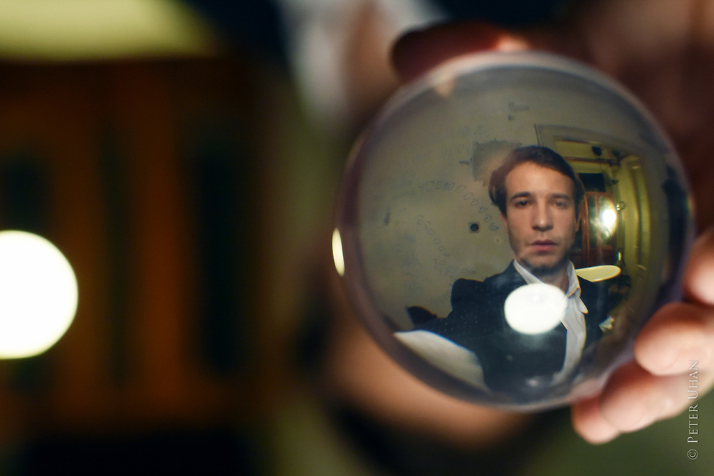 Nik Škrlec (Hans Schnier) v uprizoritvi Nemoč po motivih Heinricha Bölla in Janisa Varufakisa v režiji Primoža Ekarta ter koprodukciji Zavoda Imagnirani in Mini teatra Ljubljana.