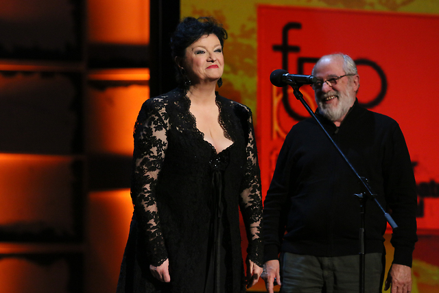 Ljerka Belak, prejemnica Borštnikovega prstana 2015, in Janez Hočevar, predsednik žirije za podelitev Borštnikovega prstana