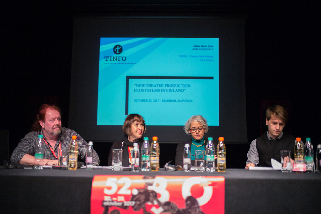 Festivalski fokus je bil posvečen sodobni finski dramatiki in gledališču. Uvod v fokus z Aljo Predan, Hanno Helavuori, direktorice finske organizacije TINFO, in Jukko Hyde Hyttijem (TINFO).