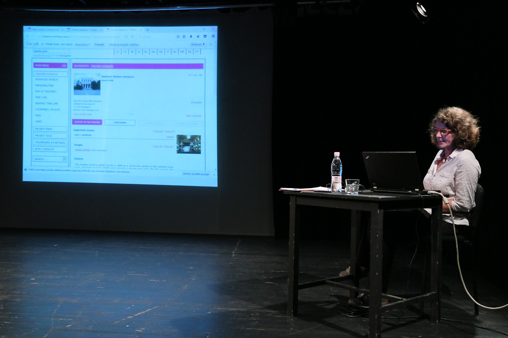 Tea Rogelj, višja kustosinja SLOGI - predstavitev mednarodnega projekta Evropske poti zgodovinskih gledališč.