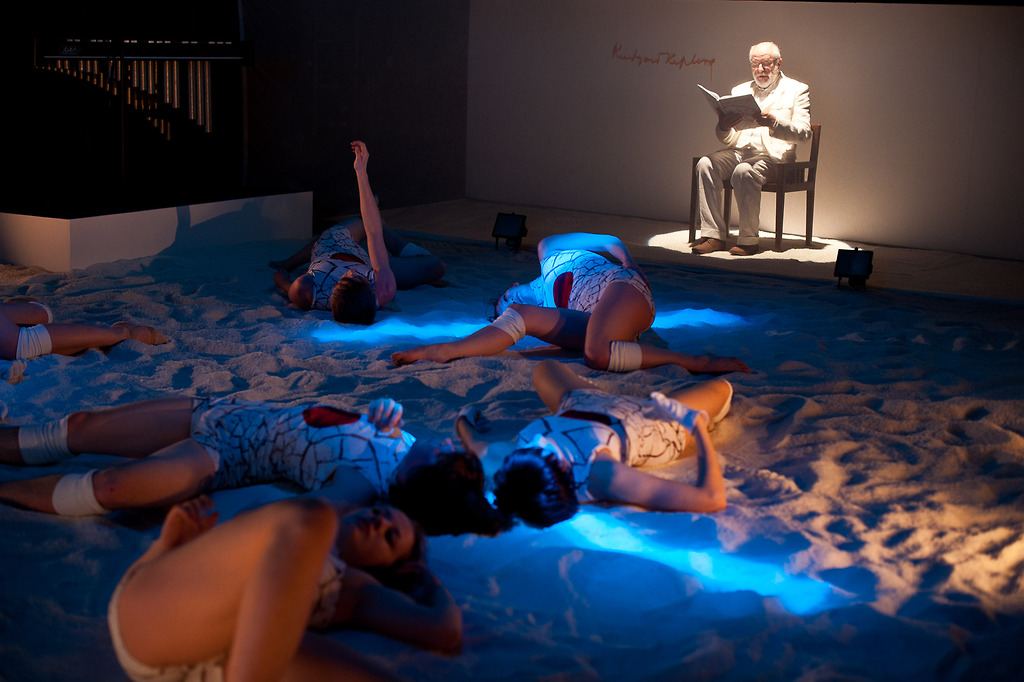 Janez Hočevar s plesalci Kjara's Dance Project v Knjigi o džungli Rudyarda Kiplinga v režiji Nane Milčinski in Matjaža Bergerja ter produkciji Anton Podbevšek Teatra.