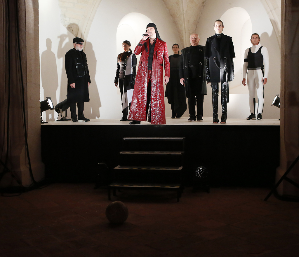 Janez Hočevar, Jana Menger, Milan Fras (Laibach), Ana Pandur Predin, Pavle Ravnohrib, Barbara Ribnikar, Jure Rovan v uprizoritvi Tako je govoril Zaratustra Friedricha Nietzscheja v režiji Matjaža Bergerja ter produkciji Anton Podbevšek Teatra.
