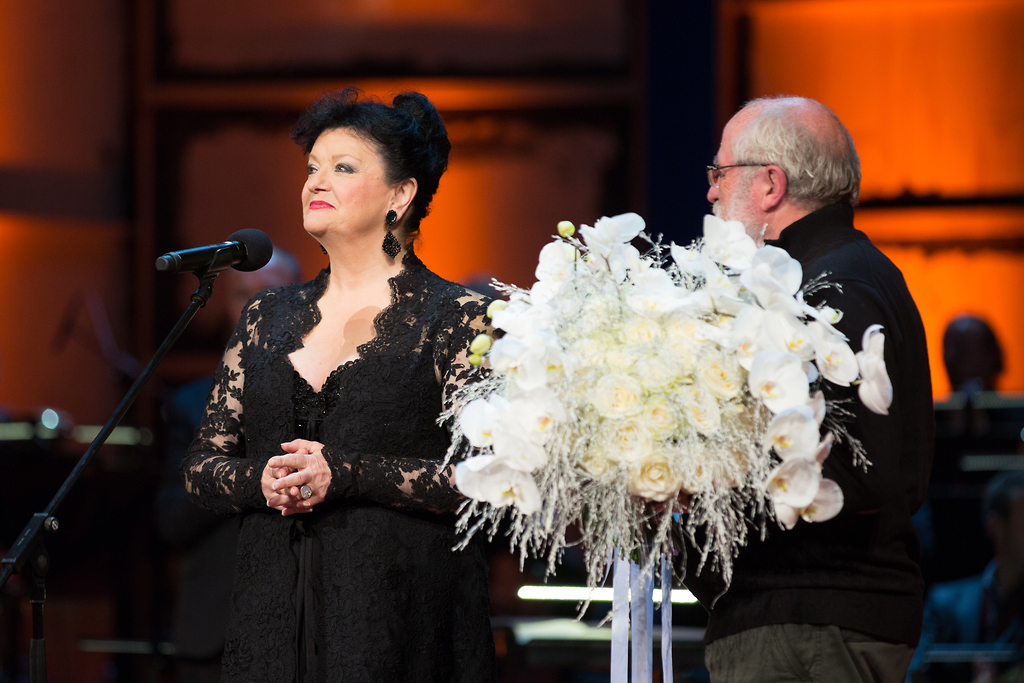 Ljerka Belak, prejemnica Borštnikovega prstana 2015, in Janez Hočevar, predsednik žirije za podelitev Borštnikovega prstana