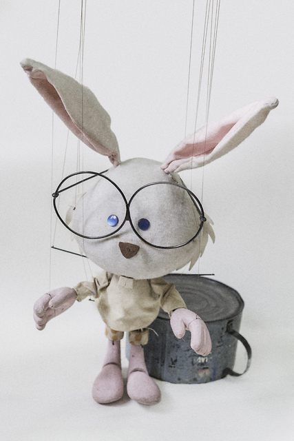 Restavriran Zajček in lonec iz predstave Sovica Oka.
