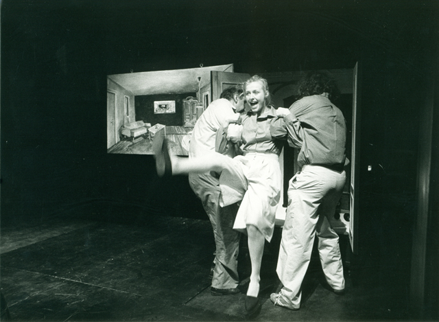 Fotografija s predstave Rudija Šeliga Kdor skak, tisti hlap, Prešernovo gledališče Kranj, 1991