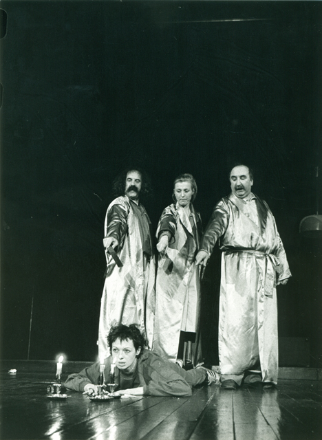 Fotografija s predstave Rudija Šeliga Kdor skak, tisti hlap, Prešernovo gledališče Kranj, 1991